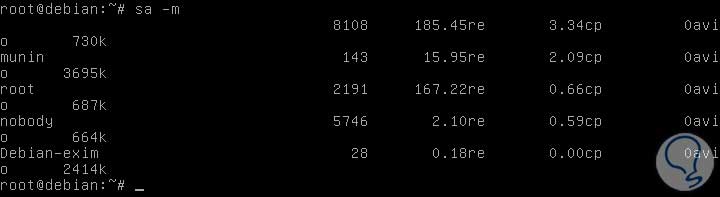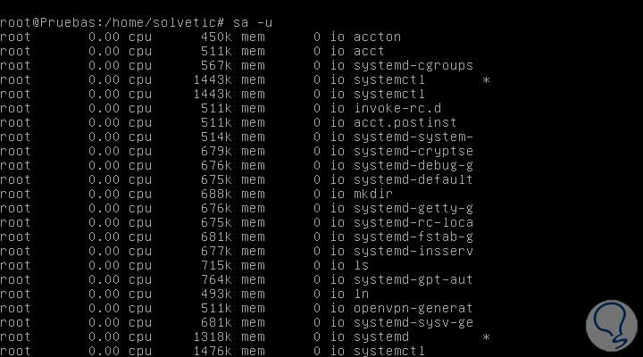 Si queremos ver el número de proceso con el tiempo de usa de CPU usaremos la sintaxis sa -m: