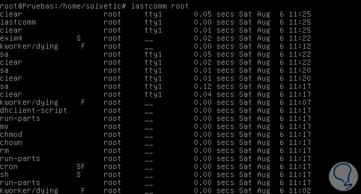 Si usamos la sintaxis lastcomm ls podremos ver el uso de cada comando: