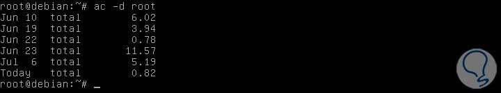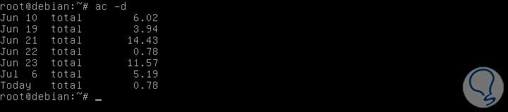 De la misma manera podemos ver la cantidad de horas incluyendo los días de un usuario en particular usando la sintaxis ac -d nombre_usuario: