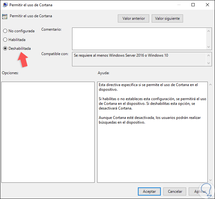 Con alguna de estas opciones será posible desactivar por completo el asistente Cortana de Windows 10 si consideramos que no es útil para nosotros.