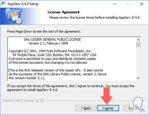 En la siguiente ventana se visualizarán los términos de la licencia. Dar clic en el botón I Agree.
