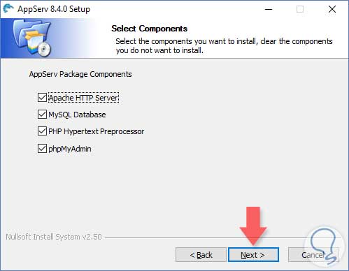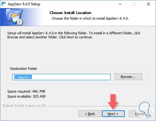 C:\AppServ\Y a continuación pulsamos el botón Next.