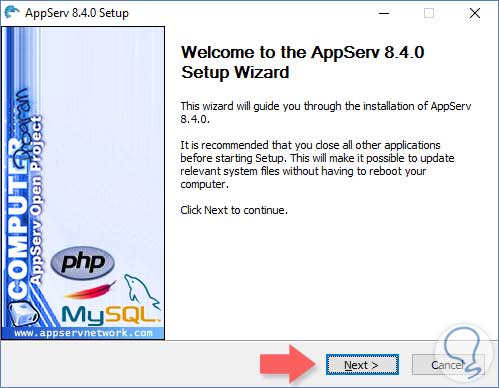 AppServ es muy parecido a XAMPP, instalará de una vez Apache, MySQL y PHP. Vamos a comenzar con su instalación paso a paso.