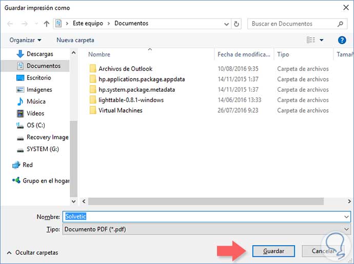 Acto seguido de pinchar en el botón del paso 2 nos saldrá una ventana para elegir dónde guardar el archivo y el nombre que le queremos dar: