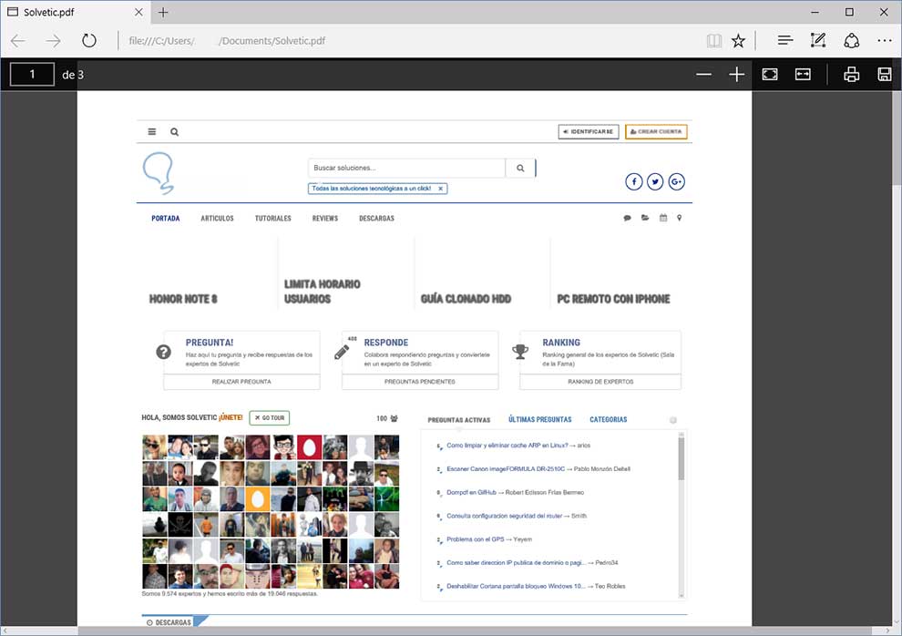 En este tutorial vamos a realizar la tarea con el navegador Microsoft Edge, que además es el lector de PDF por defecto en Windows 10.