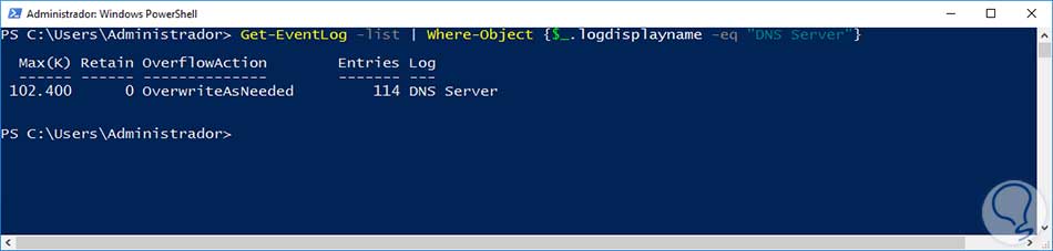 Get-EventLog -list | Where-Object {$_.logdisplayname -eq "DNS Server"}