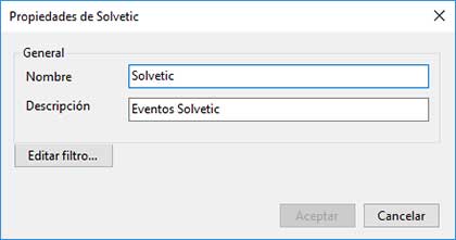 - Propiedades: Nos permite ver las propiedades de un determinado evento.