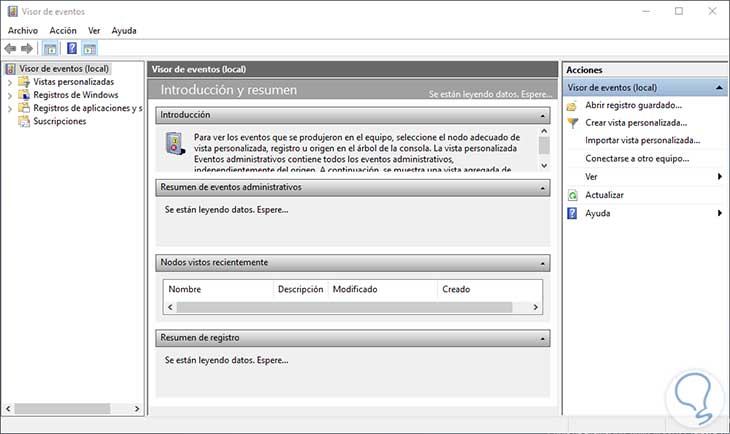 Una vez abramos el visor de eventos veremos la siguiente ventana: