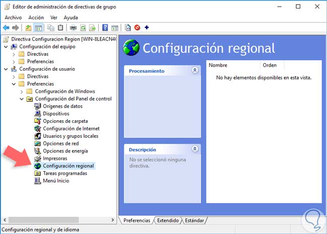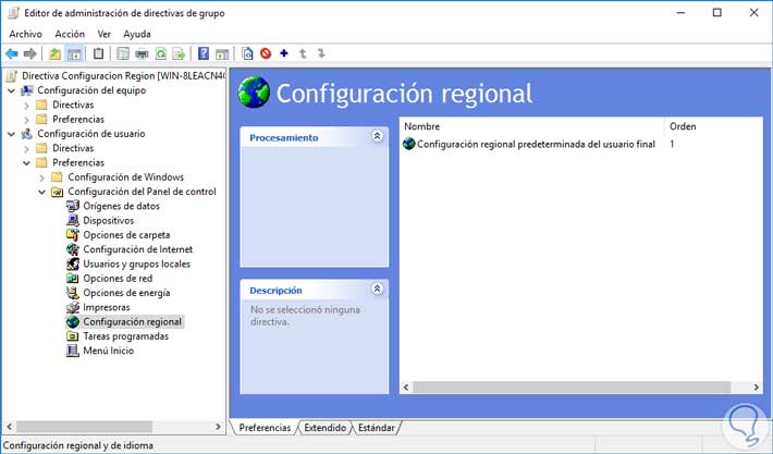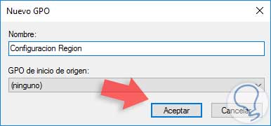 Crear política de grupo para establecer zona regional Windows Server 2016