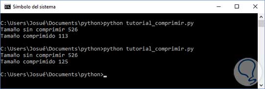 print("Tamaño comprimido %d" % len(line_compress))Si ejecutamos, tenemos la siguiente salida: