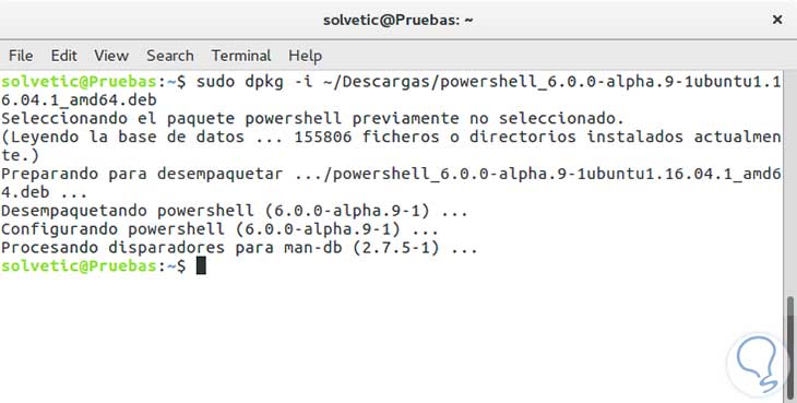 sudo dpkg -i ~/Descargas/powershell_6.0.0-alpha.9-1ubuntu1.16.04.1_amd64.deb