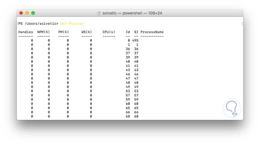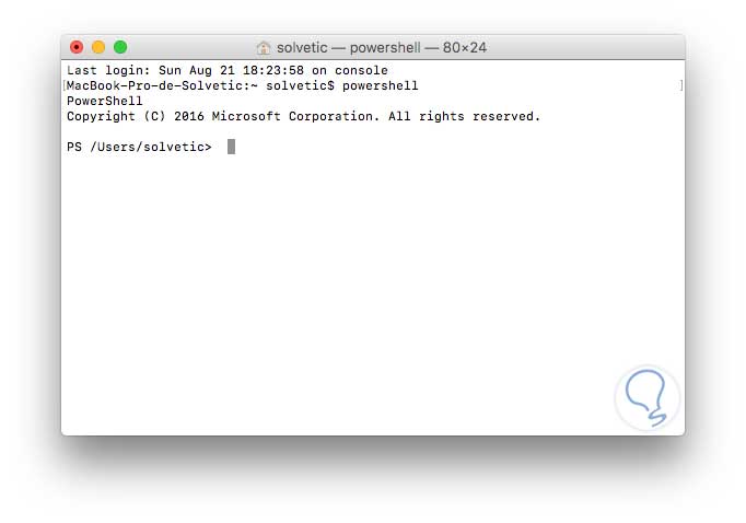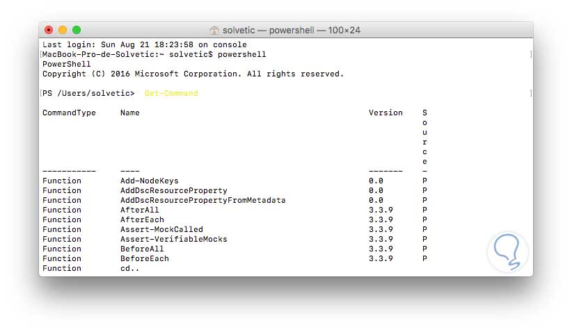 Ahora podemos ejecutar los cmdlets que consideremos necesarios desde la terminal de Mac OS Sierra.