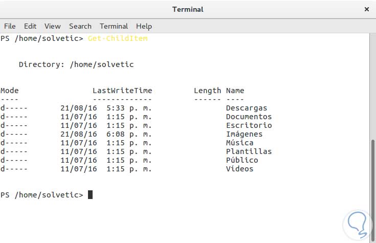 Una vez completemos esta acción basta con ingresar el término PowerShell en la terminal para que se inicie la consola. Podemos ver los resultados con algunos cmdlets: