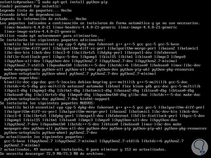 Vamos a instalar los paquetes pip de Python para poder instalar SpeedTest-cli y ejecutarlo desde la terminal.