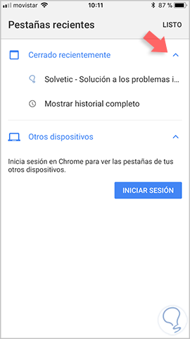 2. Cómo restaurar ventanas cerradas recientemente Chrome iPhone