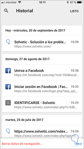 En el caso de que no encontremos la pestaña que buscamos, podemos acceder al historial para revisar todas aquellas páginas web que hayamos visitado con anterioridad.