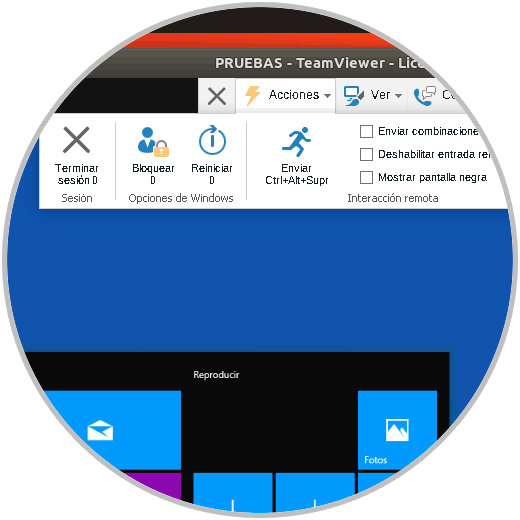 Una vez conectado, tendremos el control total del sistema de destino. La barra superior ofrece diferentes opciones de configuración y uso para TeamViewer.