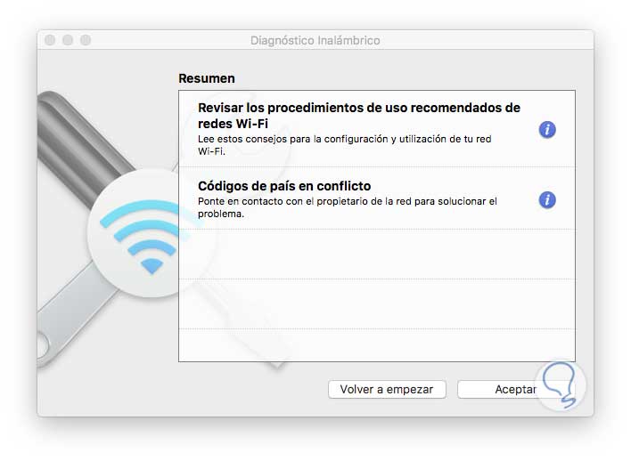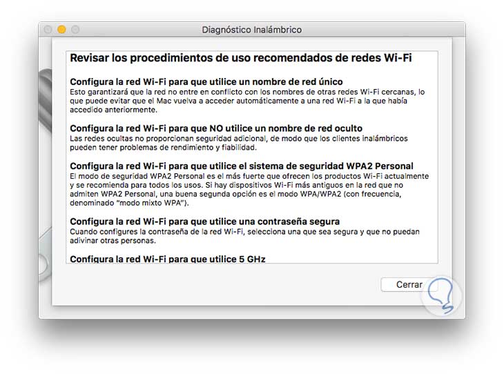 Una vez el asistente finalice su informe veremos una ventana donde podremos observar qué parámetros de la red están con algún problema.