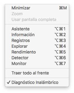 - Registros: Usando esta opción podemos registra información adicional acerca del entorno Wi-Fi, la conectividad del equipo Mac y la interfaz de red Wi-Fi.