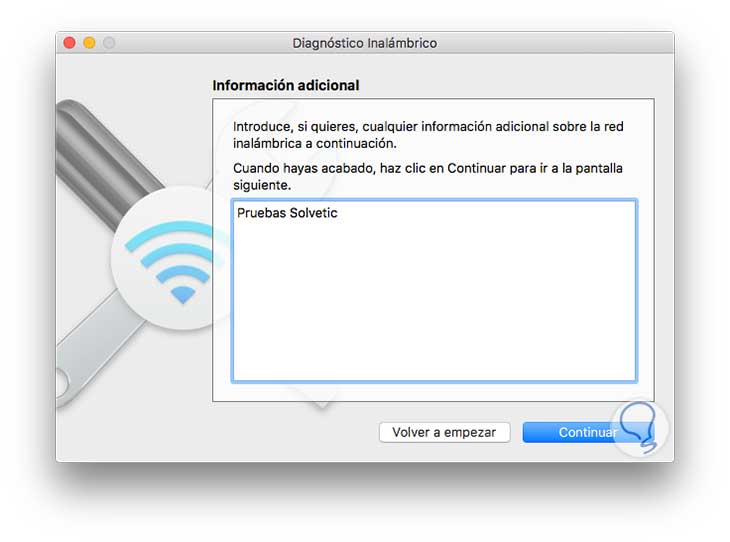 Pulsamos Aceptar y posteriormente en Continuar y en la ventana desplegada podemos incluir información adicional relacionada con la red inalámbrica que pueda ser útil.