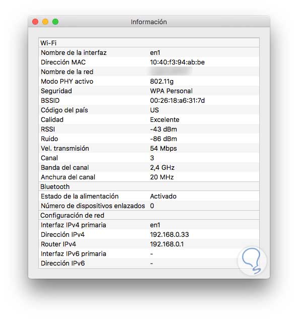 Allí podemos seleccionar cualquiera de esas opciones para ver información más detallada acerca de la conectividad inalámbrica en Mac OS: