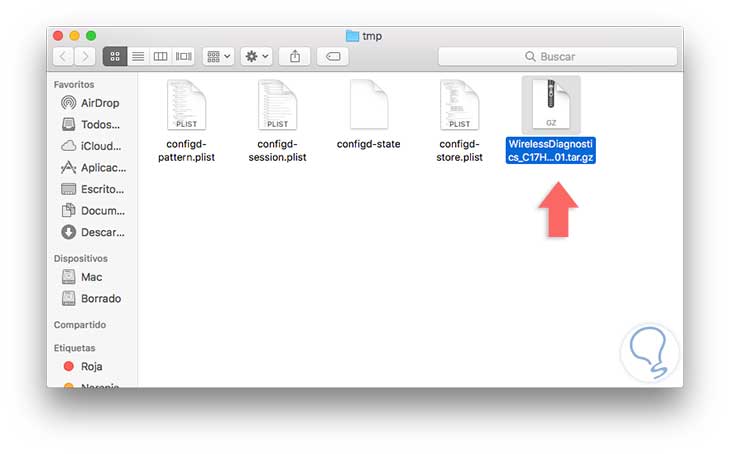 Una vez hayamos pulsado el botón Aceptar podremos ver que la herramienta ha creado un archivo con la extensión tra.gz con el nombre inicial WirelessDiagnostics