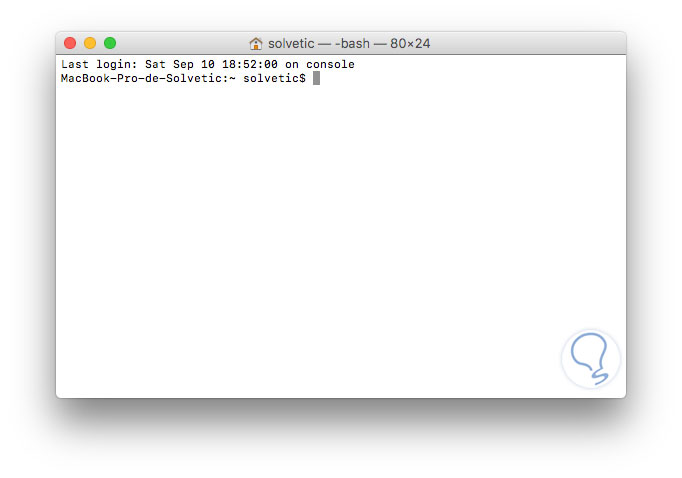 Al abrir la terminal vamos a ingresar el siguiente comando