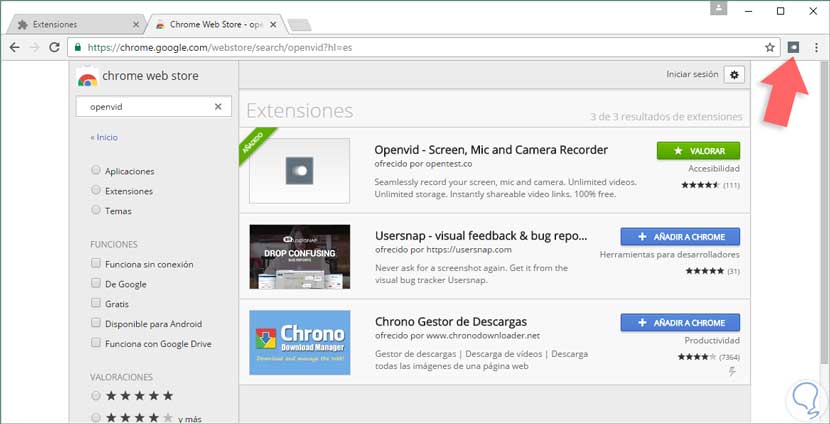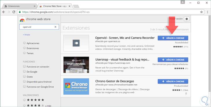 Recordemos que Openvid es una extensión de Google Chrome y para su descarga y respectiva instalación realizaremos el siguiente proceso.