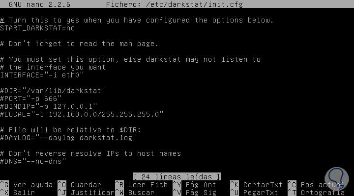 En esta ventana debemos modificar la línea “START_DARKSTAT” de no a yes y verificar que las siguientes líneas estén sin comentar (#):