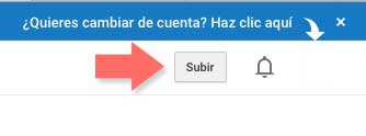 Lo primero que tenemos hacer para comenzar a grabar la pantalla de nuestro ordenador desde YouTube, es acceder a nuestra cuenta. Una vez dentro tenemos que dirigirnos al apartado situado en la esquina superior derecha el cual dice “Subir”