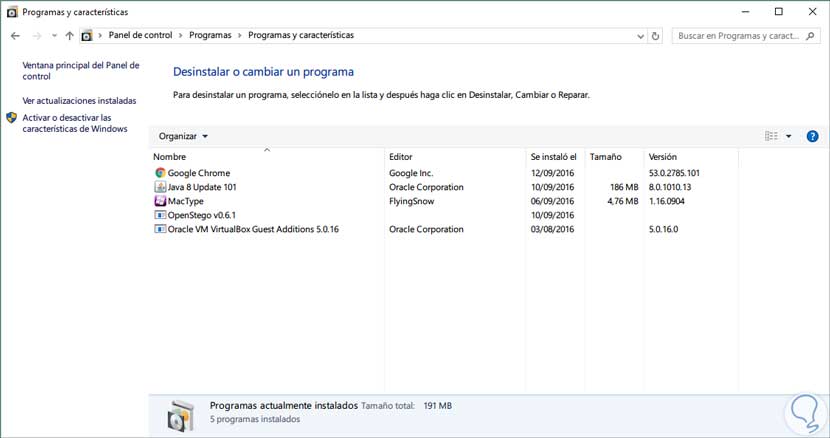 Para ver todas las aplicaciones que tenemos instaladas actualmente basta con ir al Panel de control y elegir la opción Desinstalar un programa.