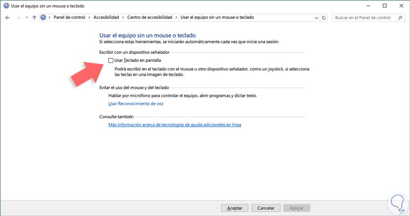 1. Desactivar teclado en pantalla Windows 10 con Panel de control