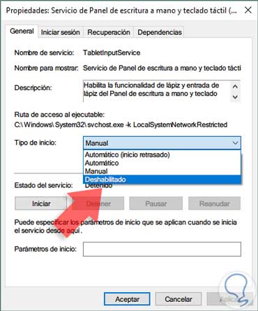 Finalmente veremos cómo podemos deshabilitar los servicios para pantallas touch ya que nuestro equipo no las tiene.