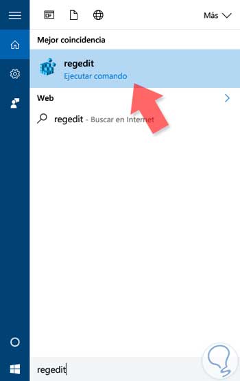Ve al buscador de Windows y teclea regedit para que te aparezca el Editor de registro. Haz clic sobre él para abrirlo.