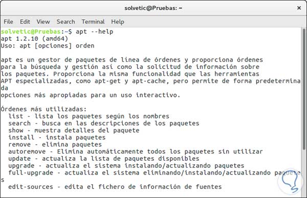 Algunas formas como usaremos apt en Ubuntu 16 sería la siguiente: