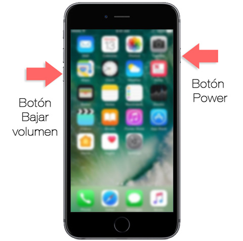 Lo que debemos hacer es mantener el botón de bajar el volumen presionado a la que tenemos presionado el botón de encender/apagar el iPhone. Debemos mantener ambos botones pulsados hasta que aparezca el logotipo de Apple en nuestra pantalla. Una vez que aparezca esto, podemos soltar ambos botones y el reinicio ya estará en proceso.