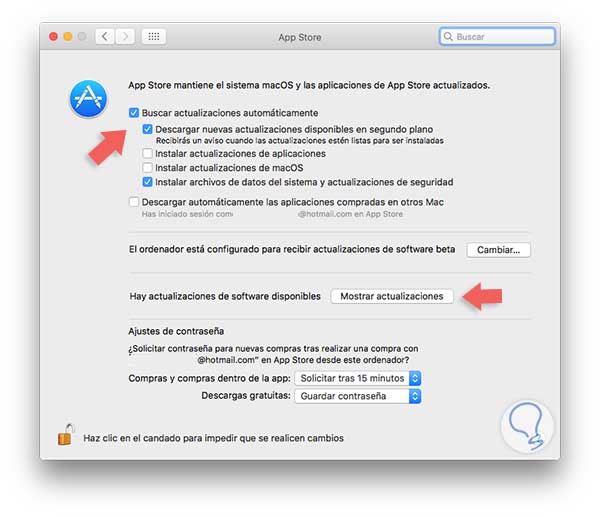 Para comprobar esto vamos a Preferencias del sistema / App Store. Allí podremos activar las opciones que consideremos necesarias para el proceso de descarga.