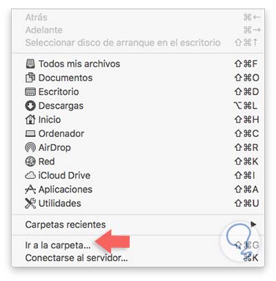 Una vez desactivada vamos a ir al menú Ir de Finder y seleccionamos la opción Ir a la carpeta