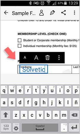 En el caso de que necesitemos rellenar algún dato, debemos hacer zoom en la pantalla y a hacer clic en el apartado correspondiente.
