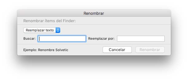 Allí ingresamos que valor buscamos y con cual término deseamos reemplazar. Finalmente pulsamos Renombrar para aplicar los cambios.