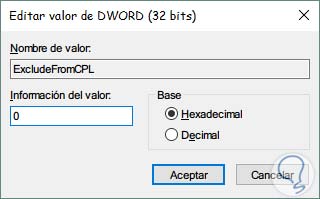 Una vez abierto el valor podemos observar en el campo Información de valor el número 1. Procedemos a modificar el número 1 por 0 y pulsamos Aceptar para guardar los cambios.