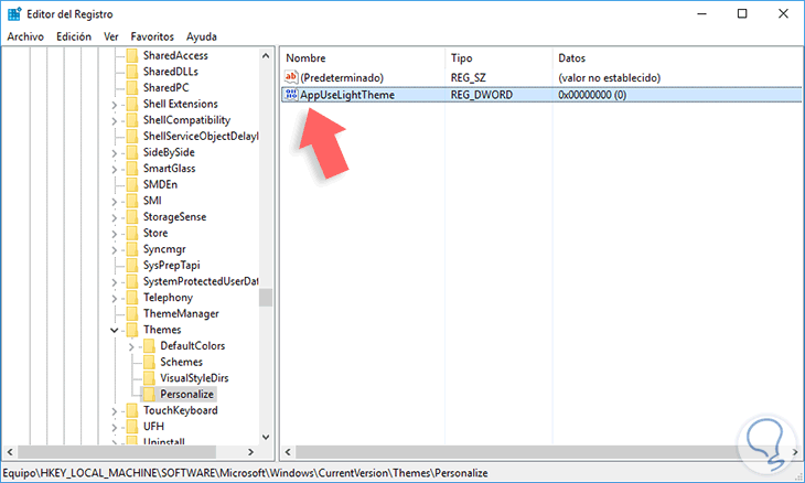 5. Usando el editor de registros de Windows 10 para habilitar tema oscuro