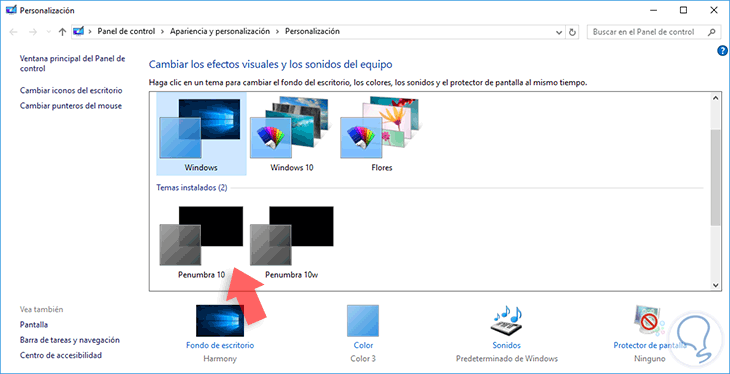 Seleccionamos la opción Cambiar el tema y se abrirá la siguiente ventana.