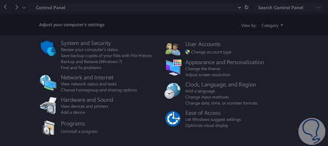 Para habilitar el modo oscuro, o por lo menos para acercarnos a él vamos a realizar lo siguiente. Abrimos el Panel de control.