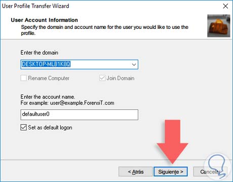 Una vez definamos el equipo donde se ha de establecer el perfil del usuario realizaremos el siguiente proceso para restaurar el perfil que hemos creado.