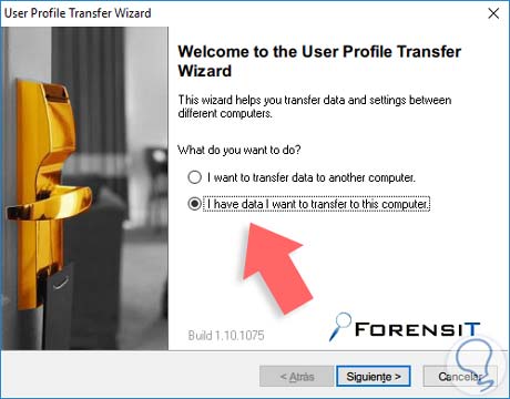 Abrimos la herramienta Transwiz y seleccionamos la opción I have data I want to transfer to this computer