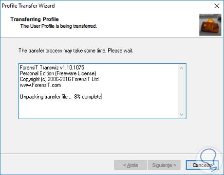 Pulsamos Siguiente y veremos que comienza el proceso de transferencia de perfil.