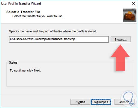 Pulsamos Siguiente y definimos la ruta donde tenemos almacenada la copia del perfil.