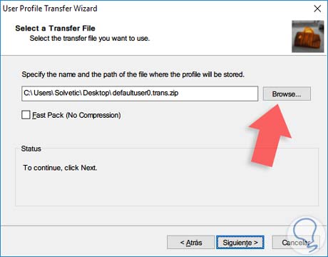 Allí es necesario definir un nombre y la ruta donde se almacenará el perfil del usuario. Una vez definamos este valor pulsamos Siguiente. Vemos que podemos activar la casilla Fast Pack para realizar el proceso de manera más ágil.