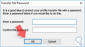 Una vez definida la contraseña inicia el proceso de transferencia del perfil seleccionado.